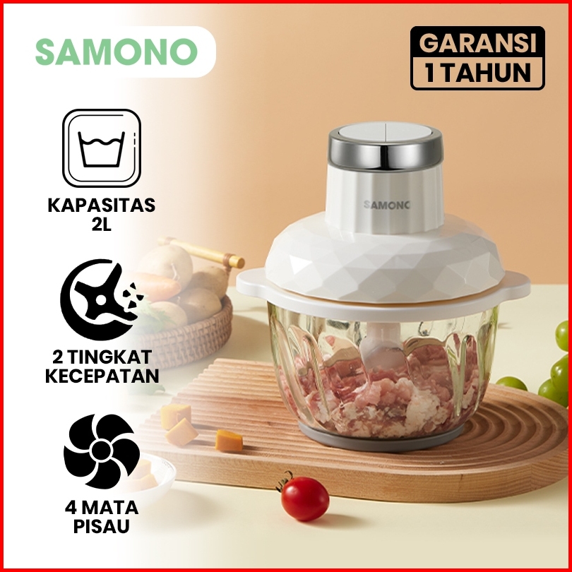 Samono 300w Food Chopper Kaca 2l Food Processor Multifungsi Penggiling Daging 2 Speed Garansi 1 Tahun Sw-c300