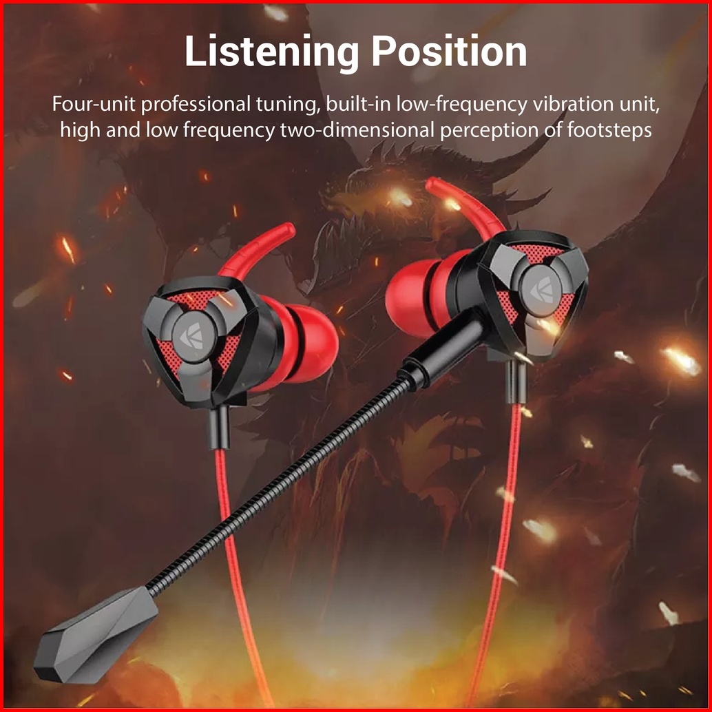 Kisonli Gaming Earphone G9 Pubg Wired Headset In Ear Noice Reduction Double Microphone 6d Hi-fi