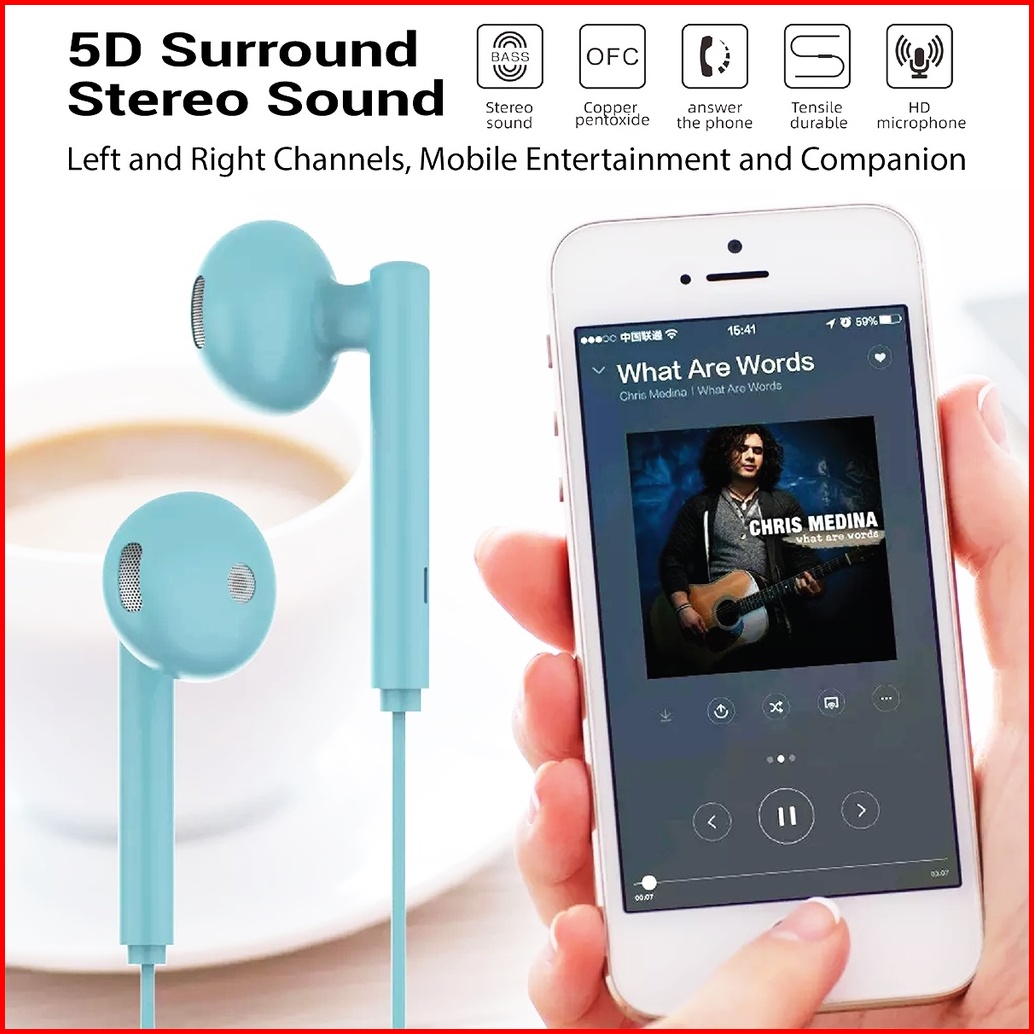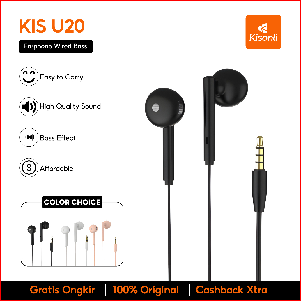 Kisonli Headset U20 Earphone Wired Bass Android Kabel Jack 3.5 Mm Original