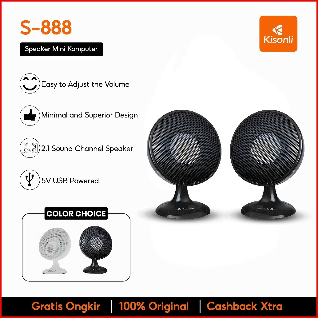 Kisonli Speaker Mini Komputer Laptop S-888-putih Super Bass Effect With Volume Control