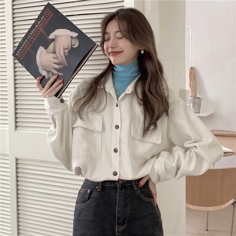 ( PROMO )yikoo-S-2XL Oversize kemeja korea blouse wanita atasan top big size