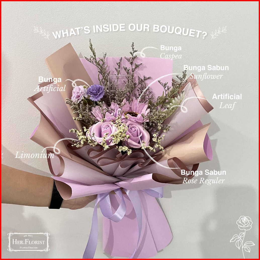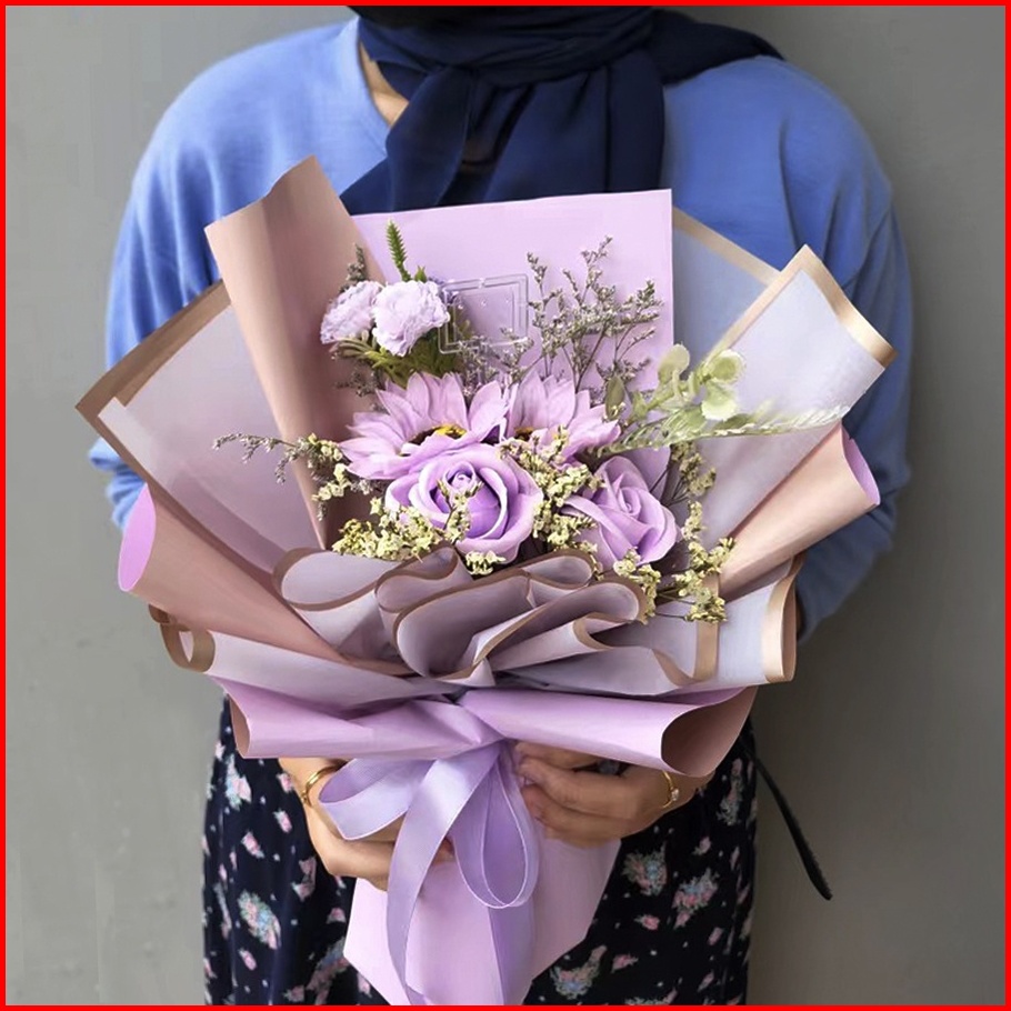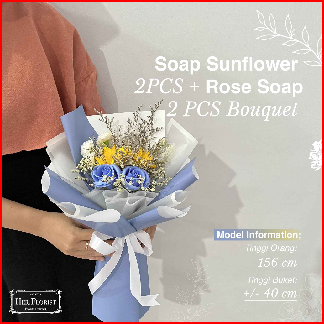 Her.florist Sunrise Mix Bouquet Soap Sunflower 2pcs Soap Rose 2pcs Dried Flower Bouquet Buket Bunga Sabun Matahari Bunga