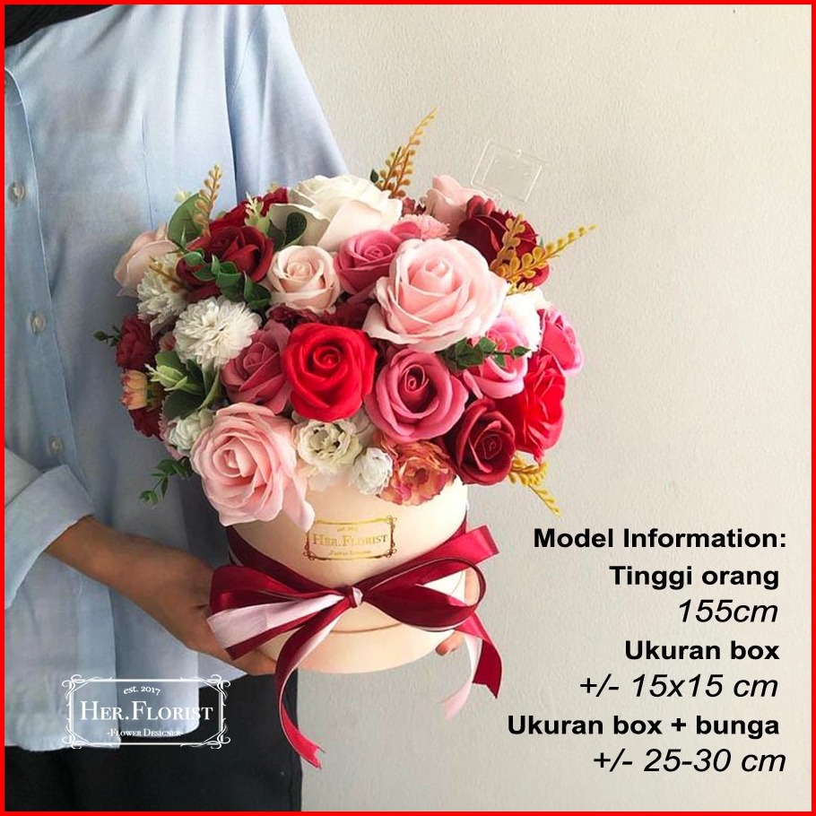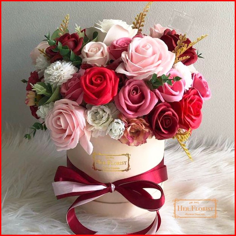 Her.florist Full Bloom Box Soap Flower Mix Artificial Flower Box Bunga Congratulations Happy Birthday Graduation Box
