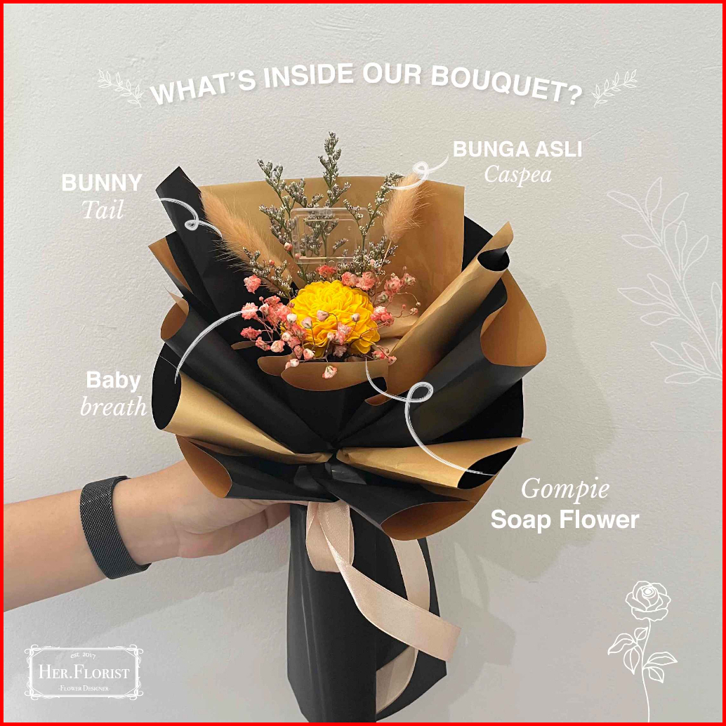 Her.florist Gompie Single Soap Dried Flower Bouquet Buket Bunga Sabun Gompie Bunga Kering