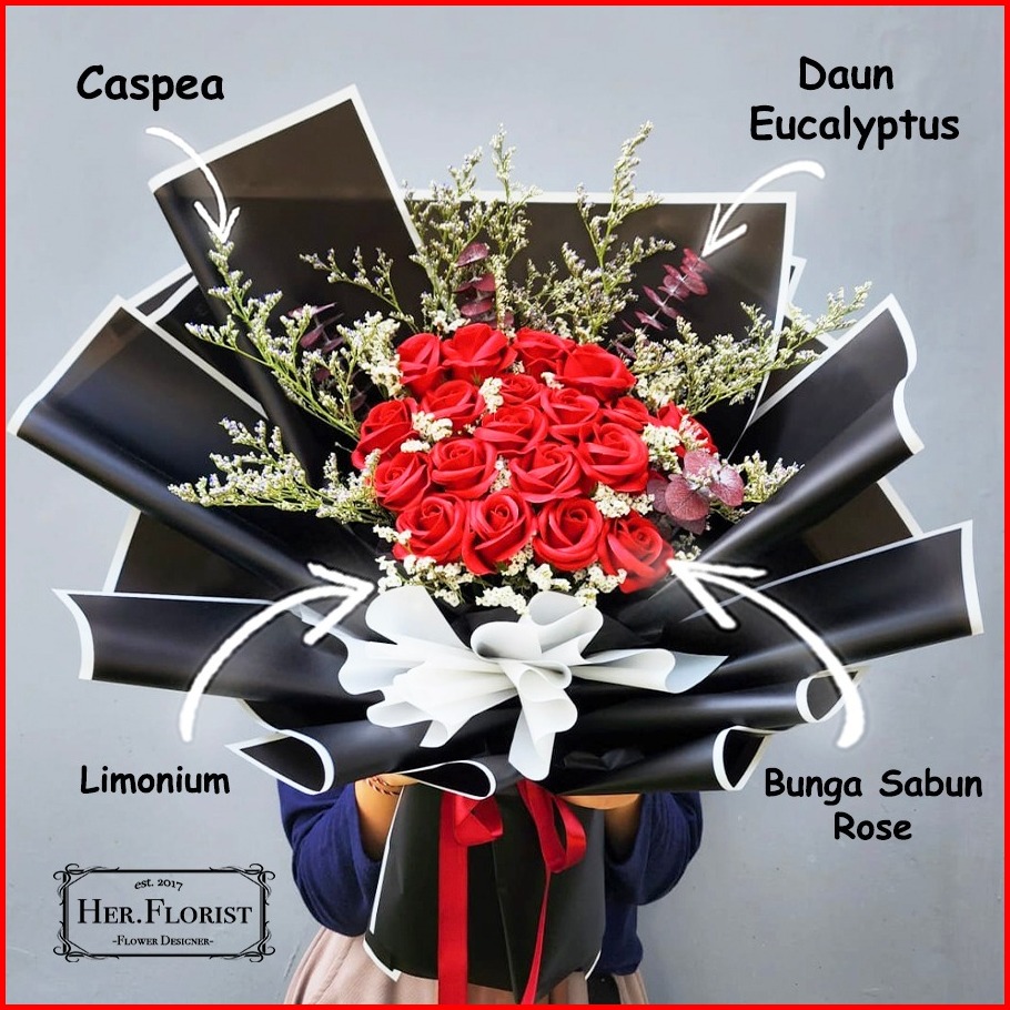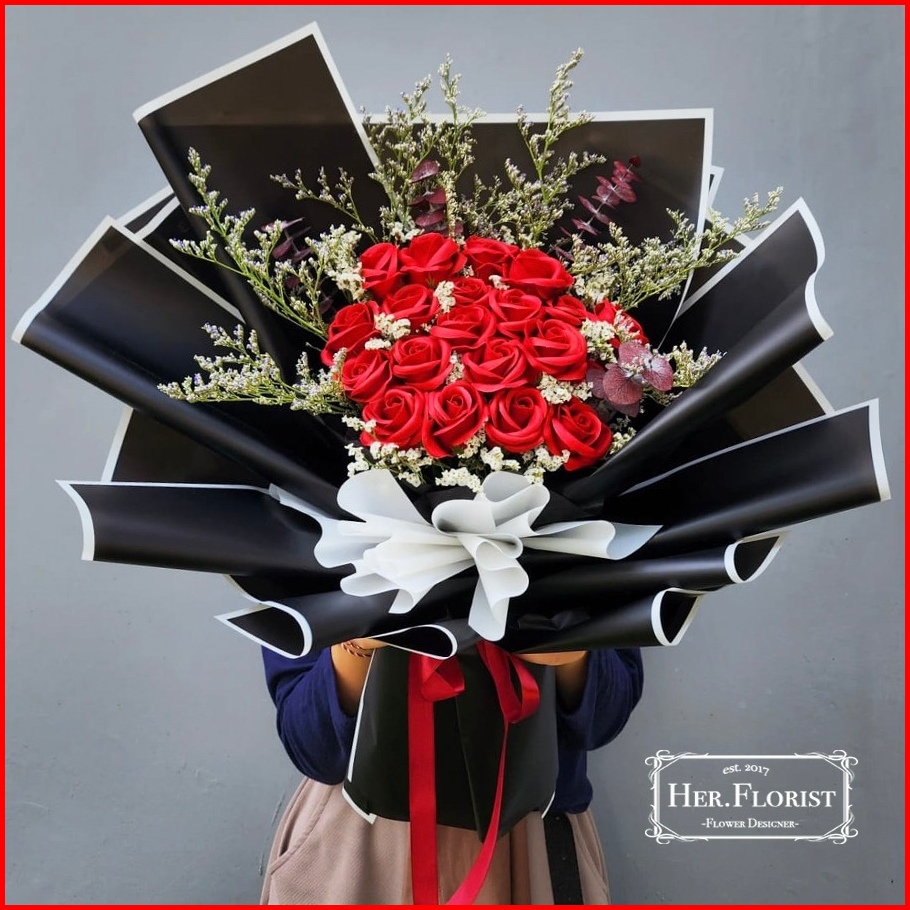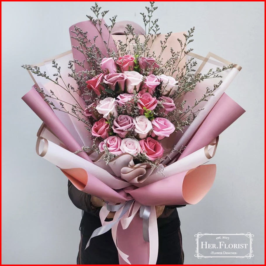 Her.florist 20pcs Soap And Dried Flowers Bouquet Buket Bunga Sabun Dan Bunga Kering Hadiah Kado