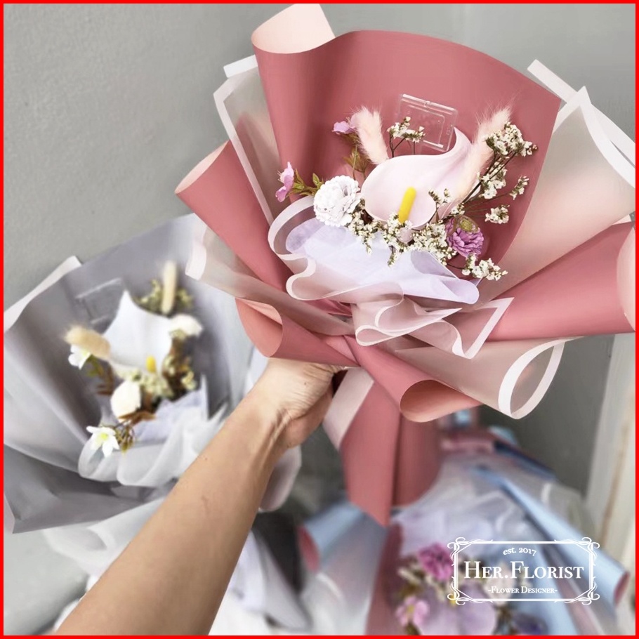Her.florist Single Cala Lily Soap And Dried Flowers Bouquet Buket Bunga Sabun Cala Lily Dan Bunga Kering Buket Wisuda