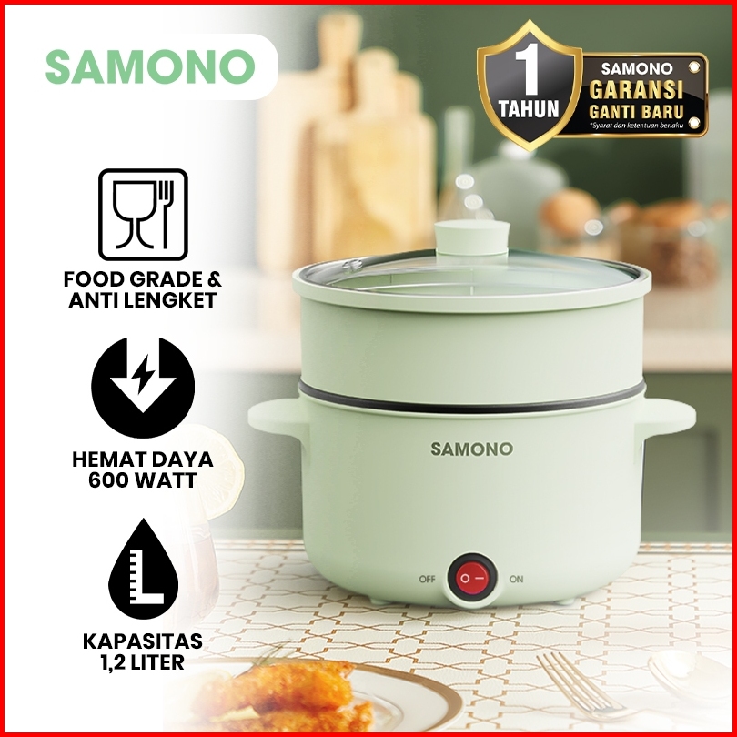 Samono Panci Listrik Serbaguna Fry Pan 1.2l Anti Lengket 600 Watt Material Food Grade Free Kukusan Sw-dg04