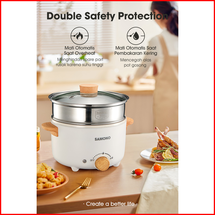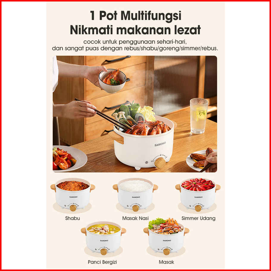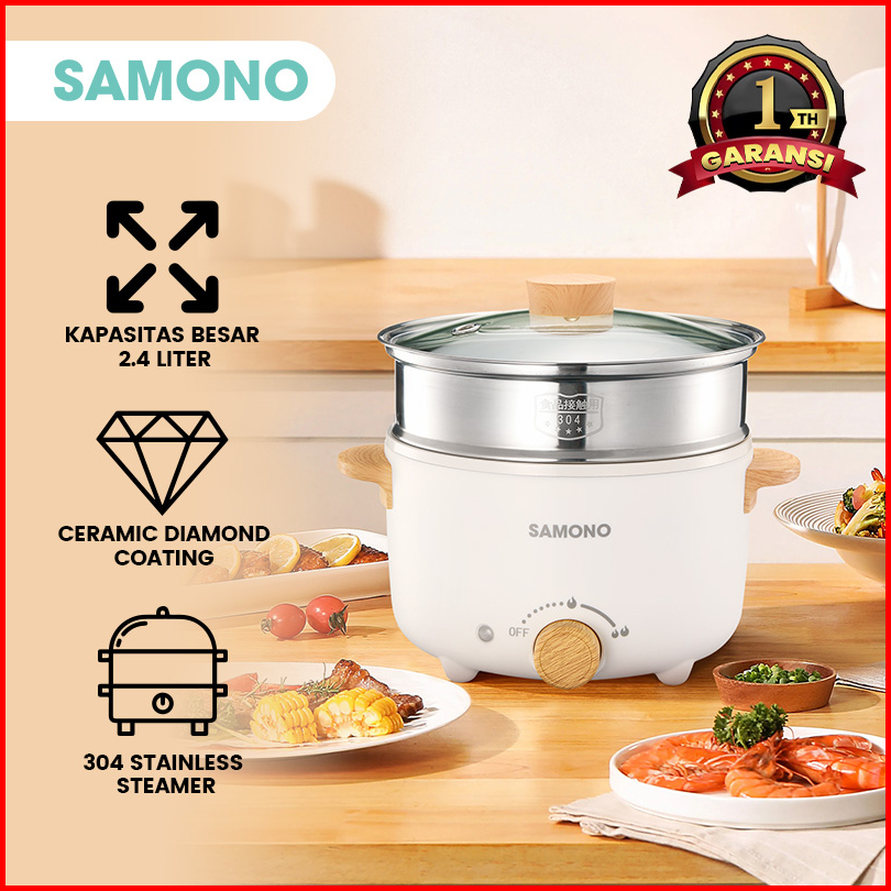Samono Panci Listrik 2 4 L 1 6 L Liter Fry Pan Teflon Keramik Kukusan Stainless Serbaguna Low Watt Garansi 1 Tahun - Sw-