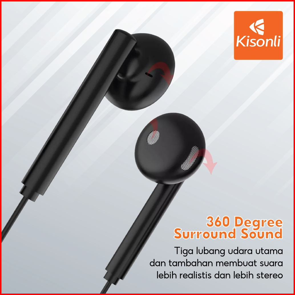 Nuz - Kisonli Headset U20 Earphone Wired Bass Android Kabel Jack 3.5 Mm Original
