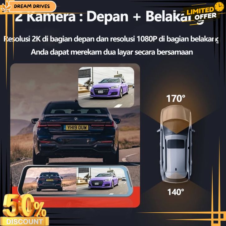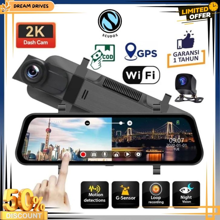 Scudos Dashcam Mobil 2k Hd 10 Inch Layar Sentuh Ips Night Vision Dual Lens Perekaman Loop 24 Jam