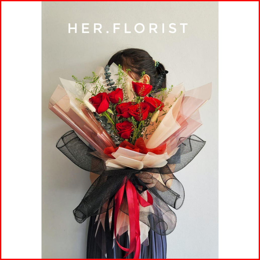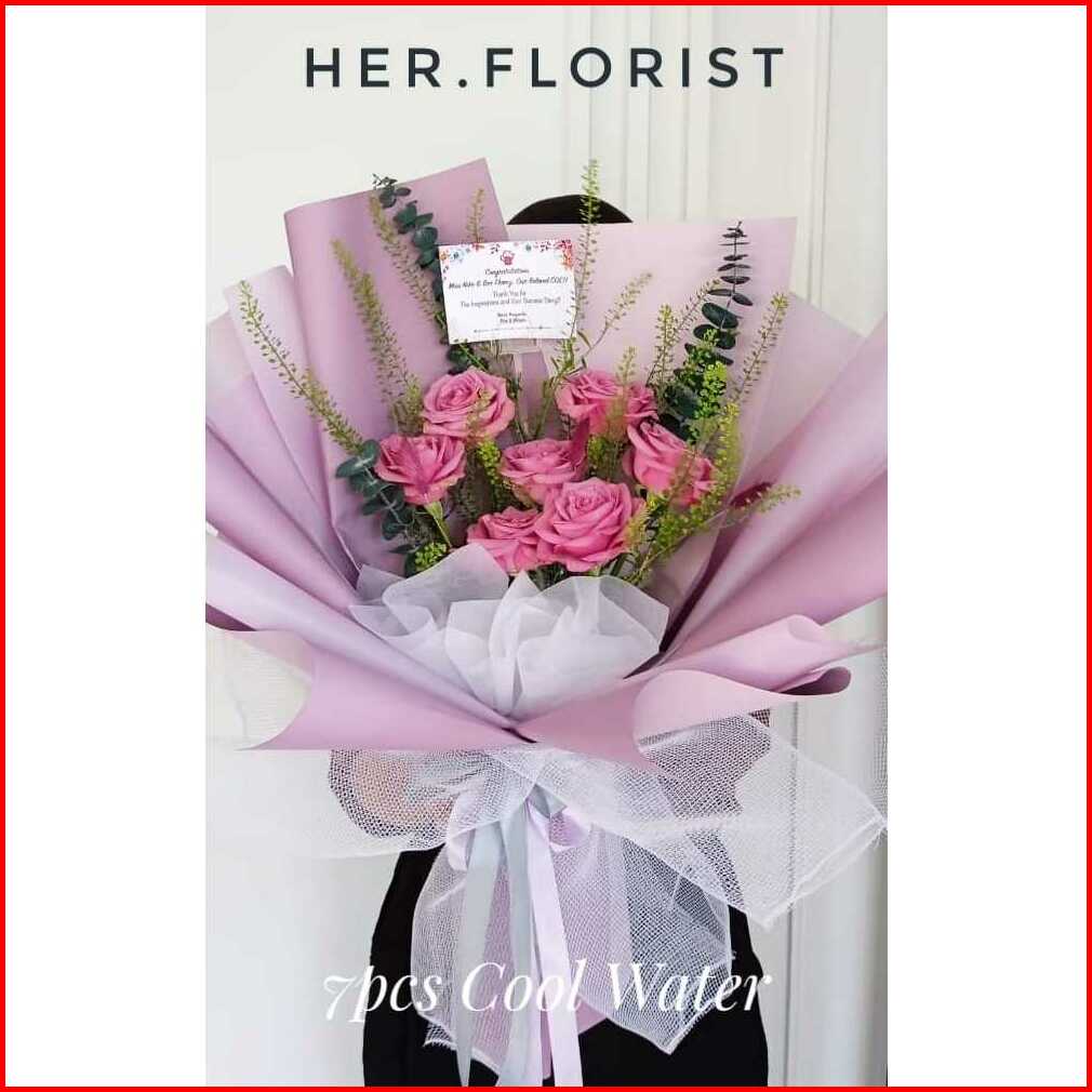 Her.florist Fresh Flower Seven Roses Bouquet Buket 7pcs Bunga Mawar Asli Buket Fresh Rose Flower Buket Wisuda