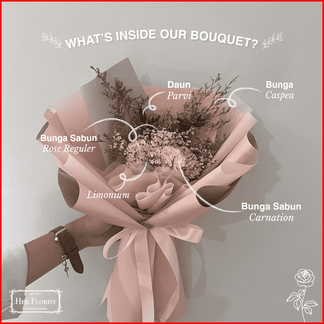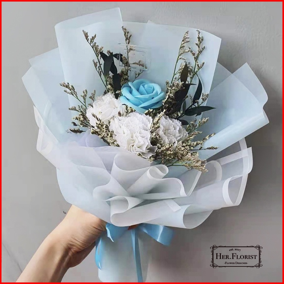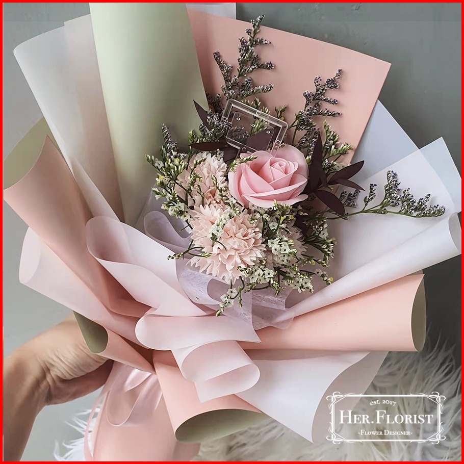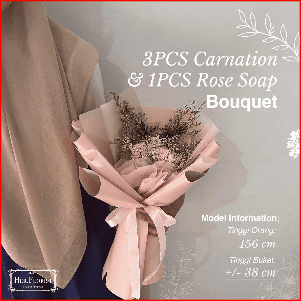 Her.florist Mix 3pcs Carnation 1pcs Rose Soap Dried Flower Bouquet Buket Bunga Sabun Campur