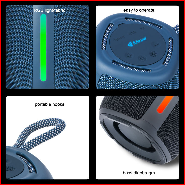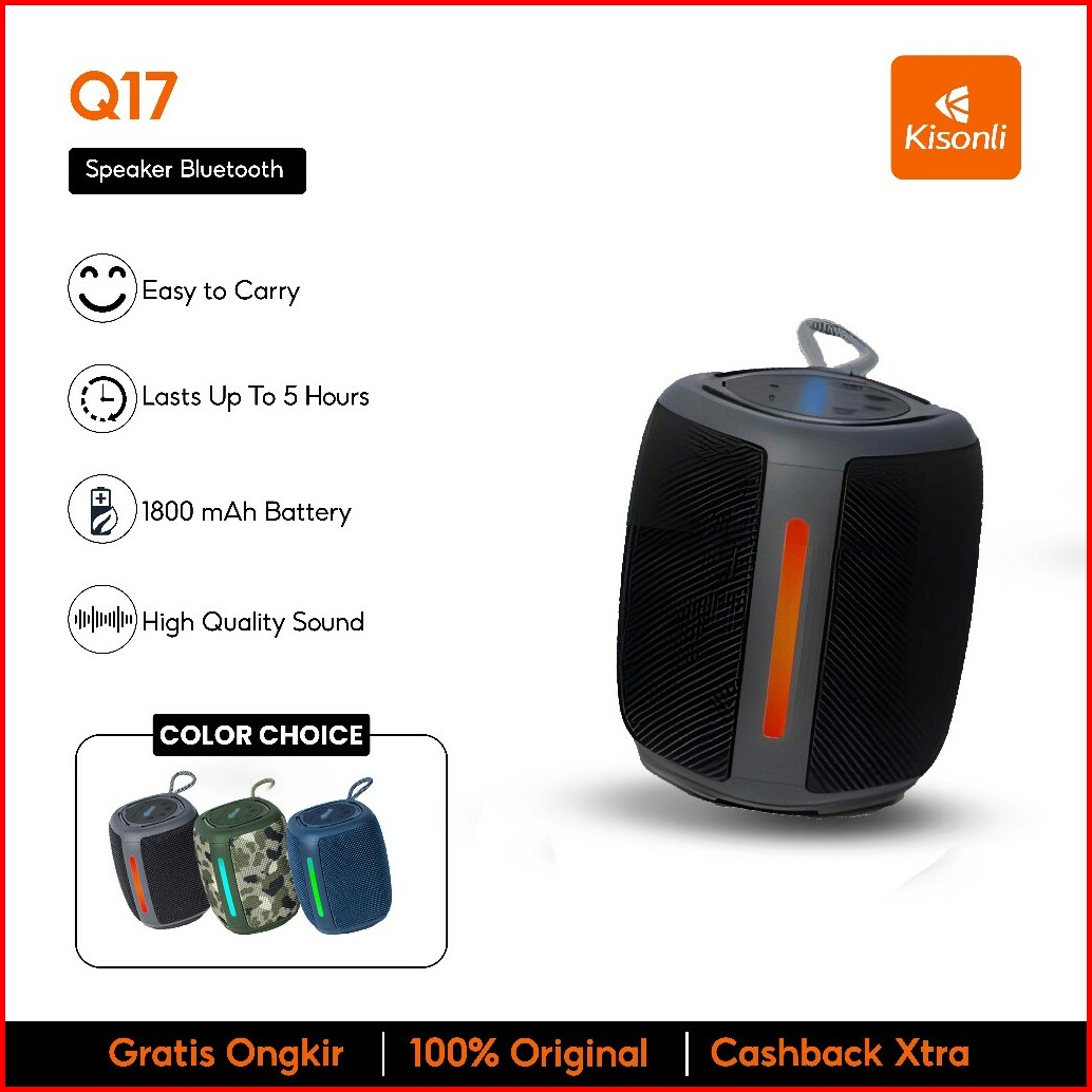 Kisonli Speaker Bluetooth 5.3 Aktif 1200mah Led Light Rgb Portable Q17 Bt Tf Fm