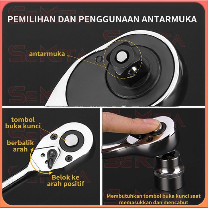 Set Kunci Sok Kunci Shock 46 pcs Mobil Motor Lengkap Socket Tool Kit set Pas Ring Motor Mobil