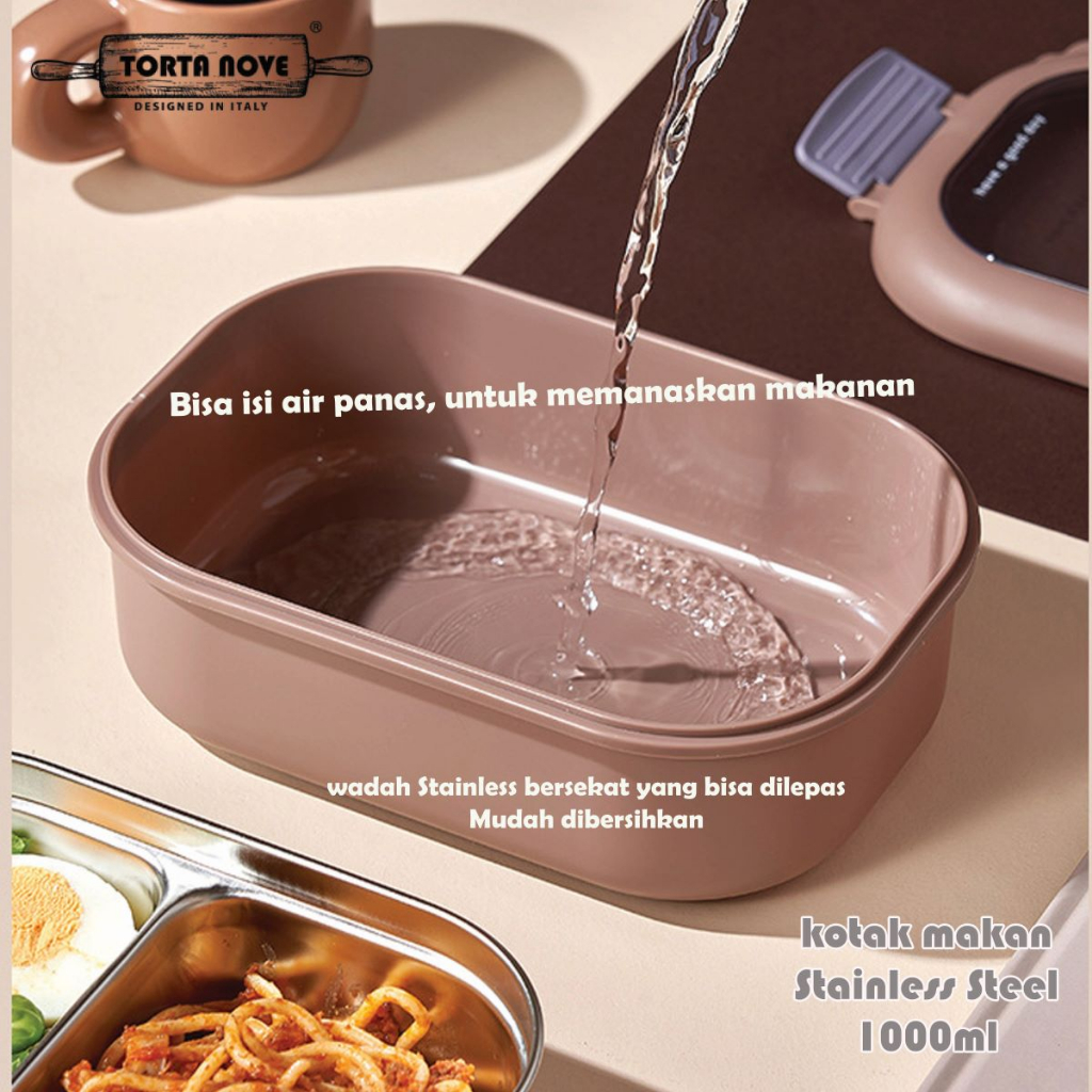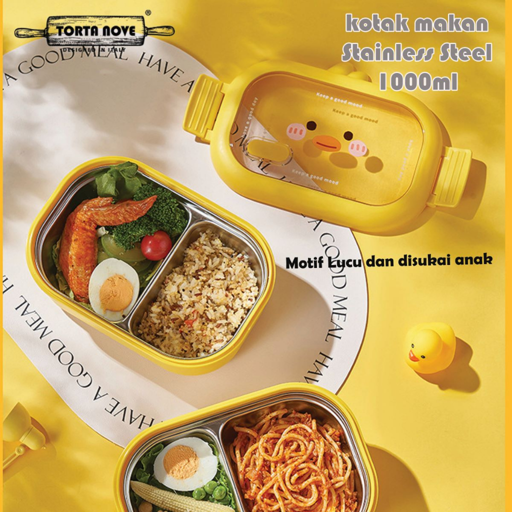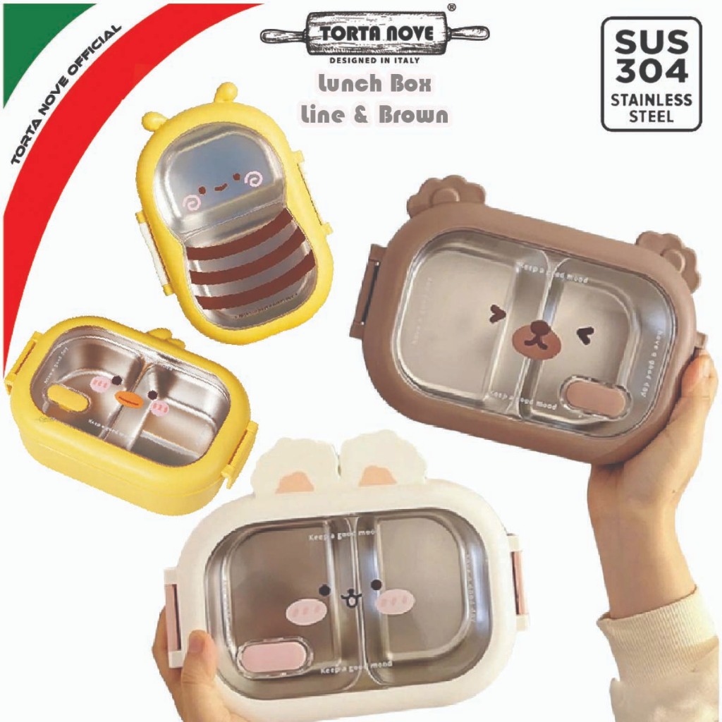 Kotak makan lunch box anak Stainless Steel 2 sekat Tempat bekal anti tumpah tahan panas SALLY BROWN