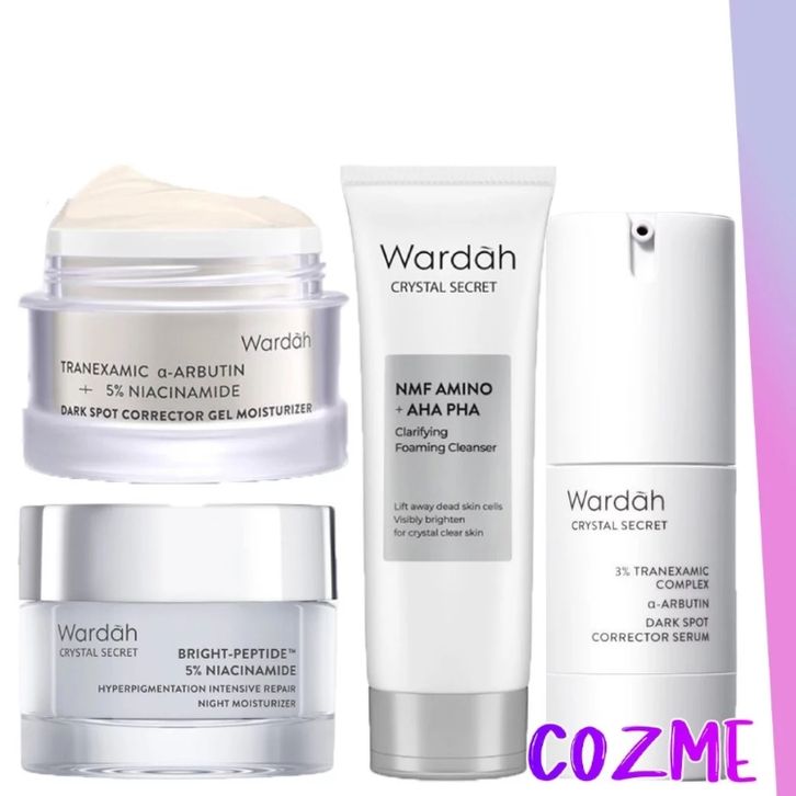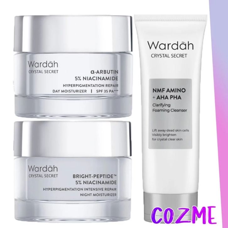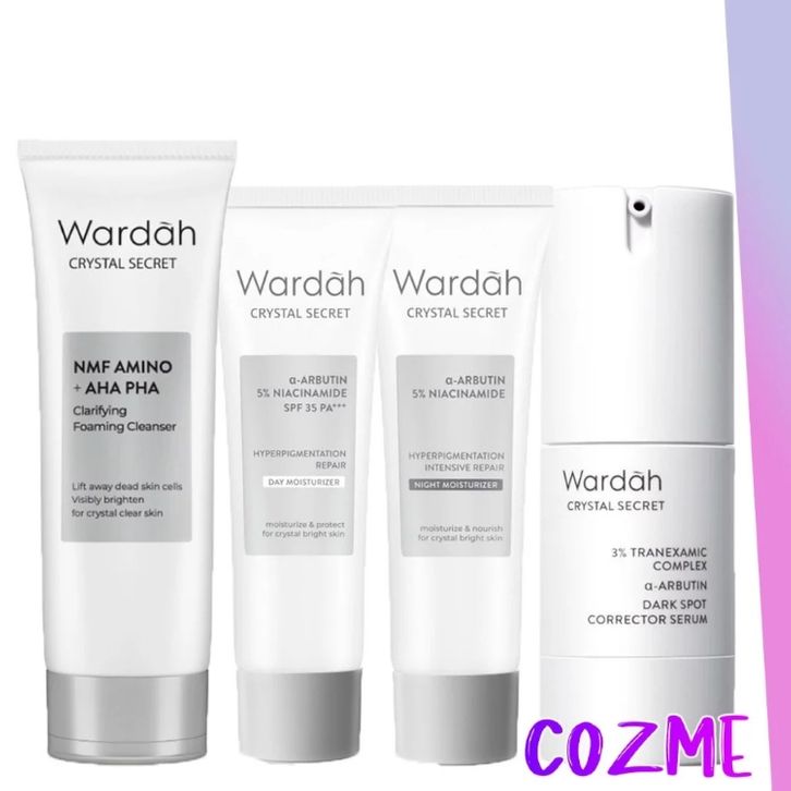 5PCS WARDAH Crystal Secret Day Cream Night Cream Tube Foaming Cleanser 100mL Dark Spot Serum 20mL Essence 30mL Original
