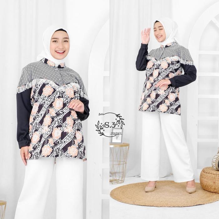 Baju Batik Wanita Terbaru Combinasi Moscrepe mix Tile Terbaru