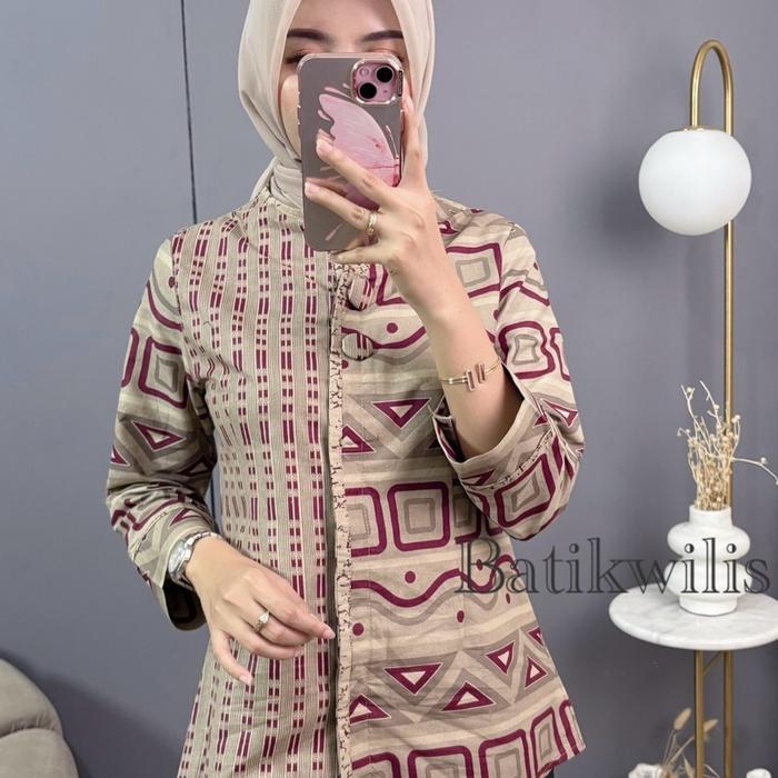 Baju Batik Wanita Modern Atasan Blouse Batik Kerja Kantor Wanita