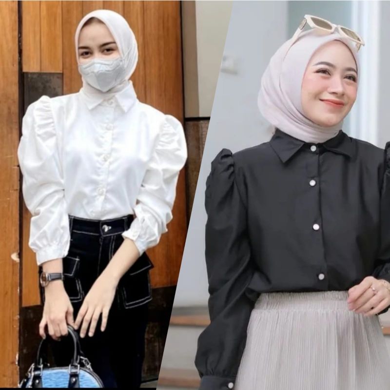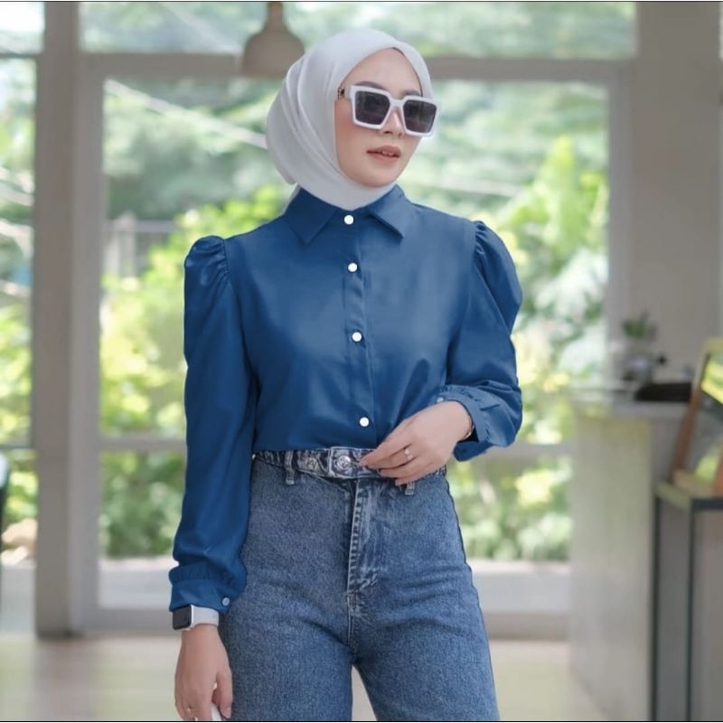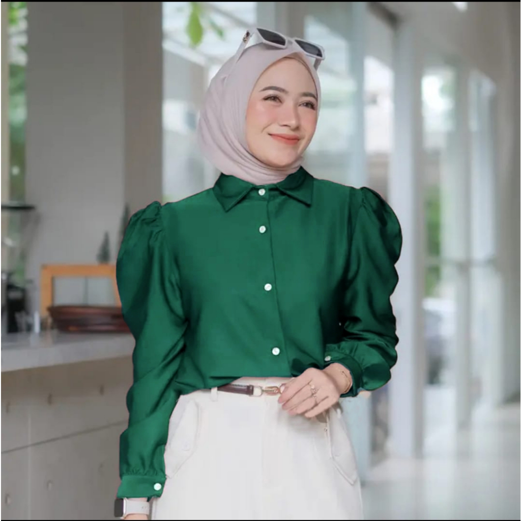 Qyla Bella Kemeja Puffy Blouse Atasan Wanita Panjang Katun Soft