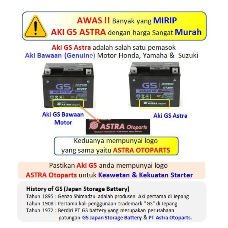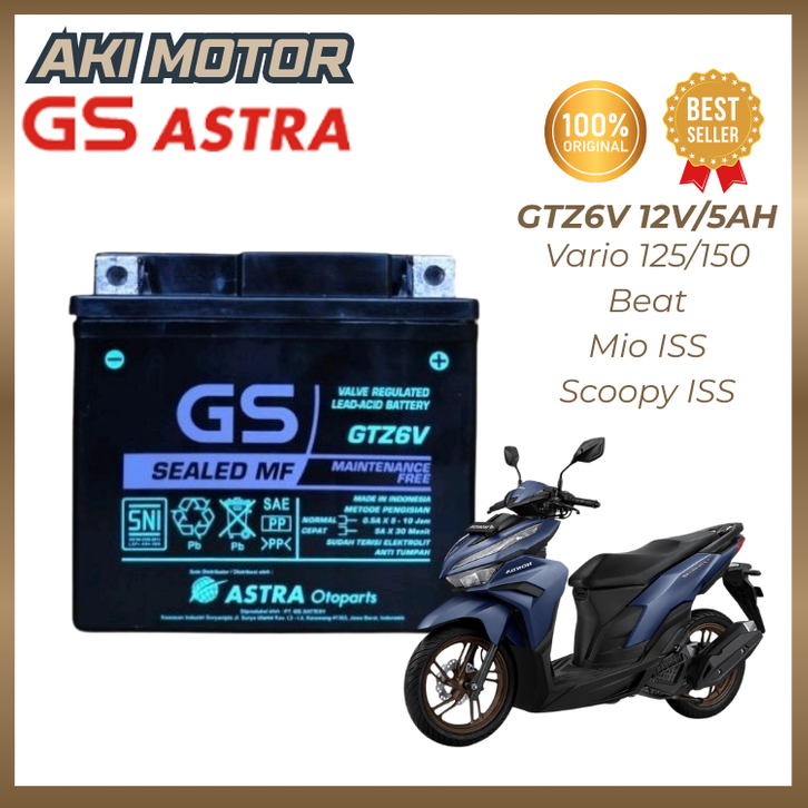 Aki Motor Vario 125 150 GS Astra GTZ6V Original Kering Sealed MF PCX Sonic CBR CB Satria 150