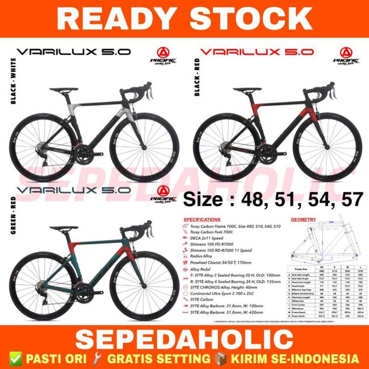 Sepeda Balap Roadbike 700C PACIFIC VARILUX 5.0 Carbon Shimano 105 2x11 Speed Garansi Resmi 5 Tahun