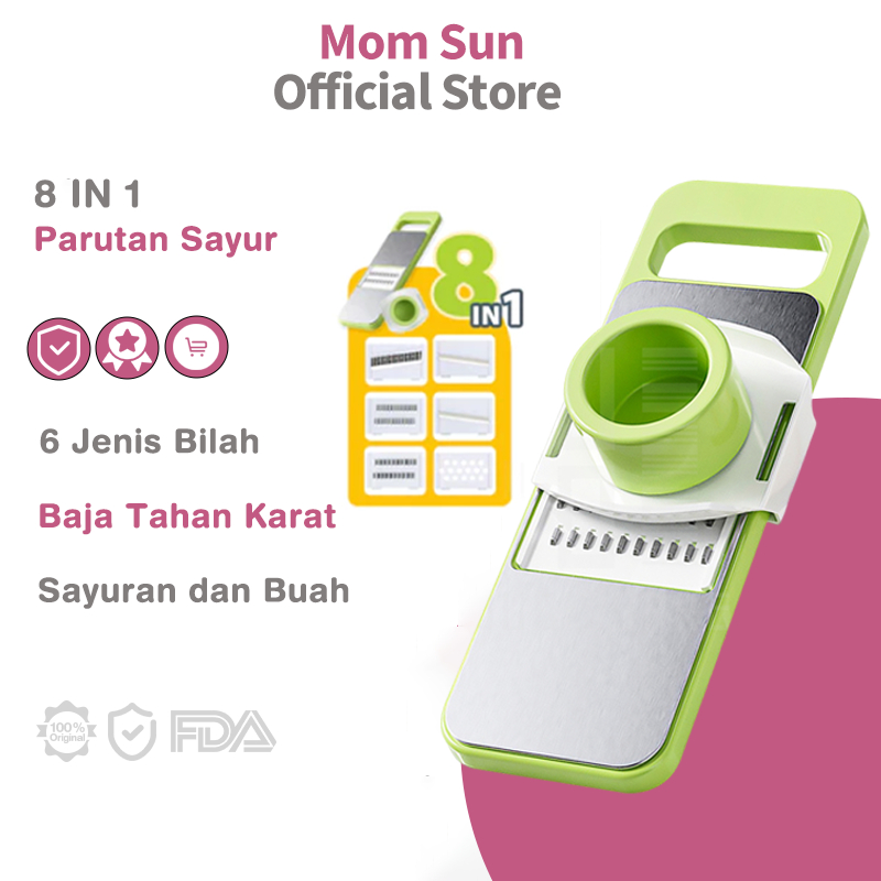 Momsun Parutan Sayur dan Buah 8 in 1 Parutan Serbaguna Baja Tahan Karat Pemotong Sayur VG01
