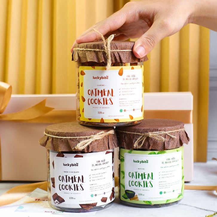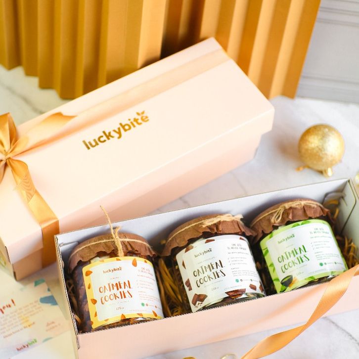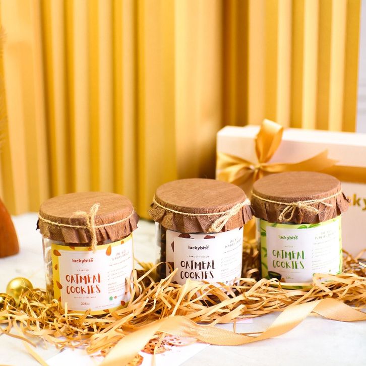 Hampers Oatmeal Cookies 3 Jar LuckyBite Gift Box Semi Hardbox + Free Greeting Card & Pita