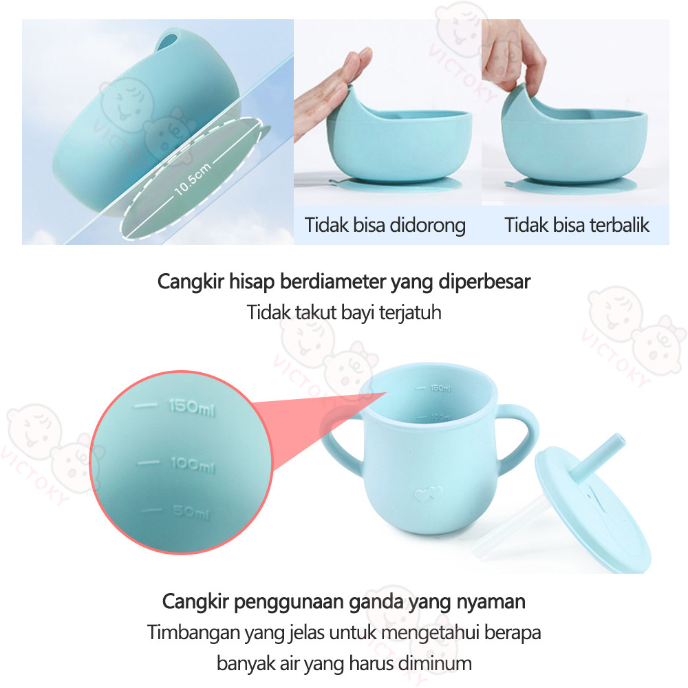 VICTOKY 5PCS Peralatan Makan Mpasi Bayi Set / Celemek Makan Bayi Silicone / Mangkok Sendok Bayi / Training Cup Anak