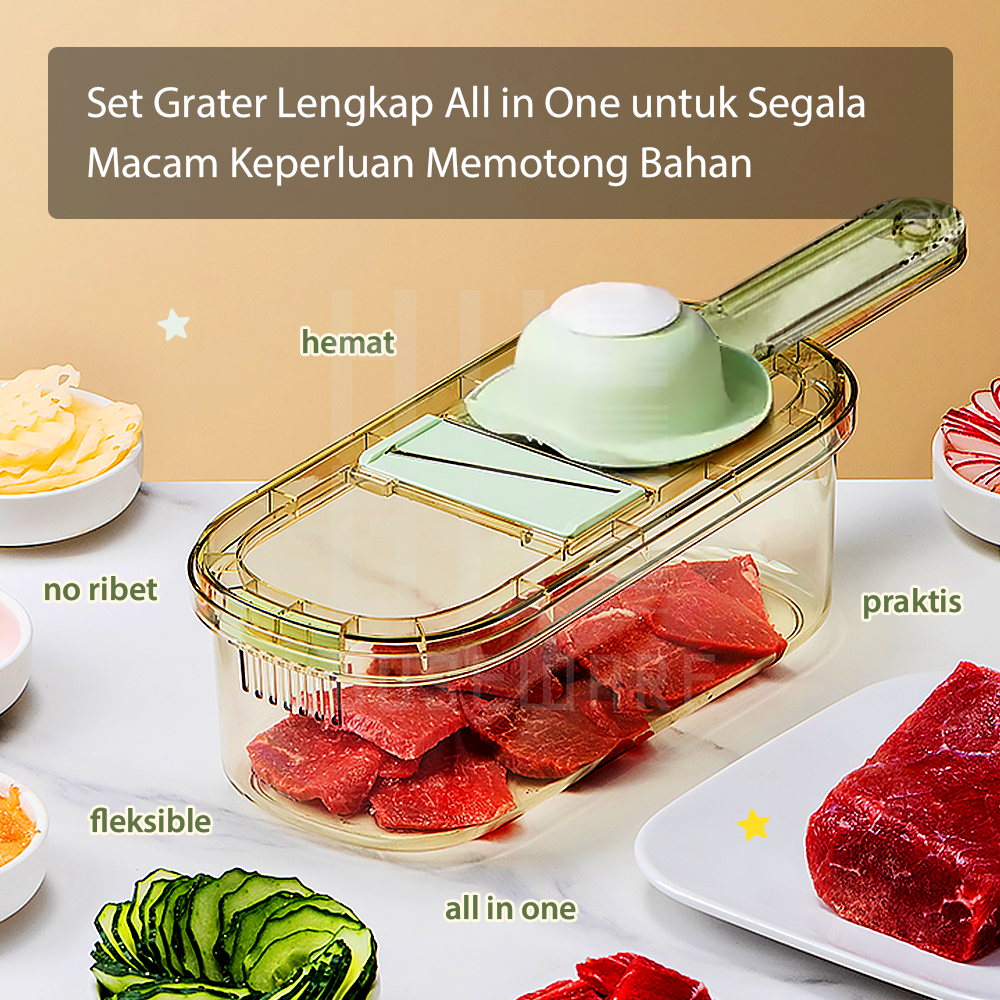 HUGO Parutan Sayur dan Buah 8 in 1 Parutan Serbaguna Pemotong Iris Sayur dengan Wadah Premium Quality