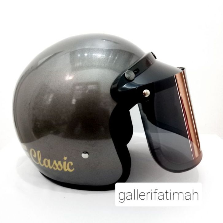 Helm bogo classic Abu Glossy kaca helm flat cembung smoke bening pelangi gold silver pet panjang