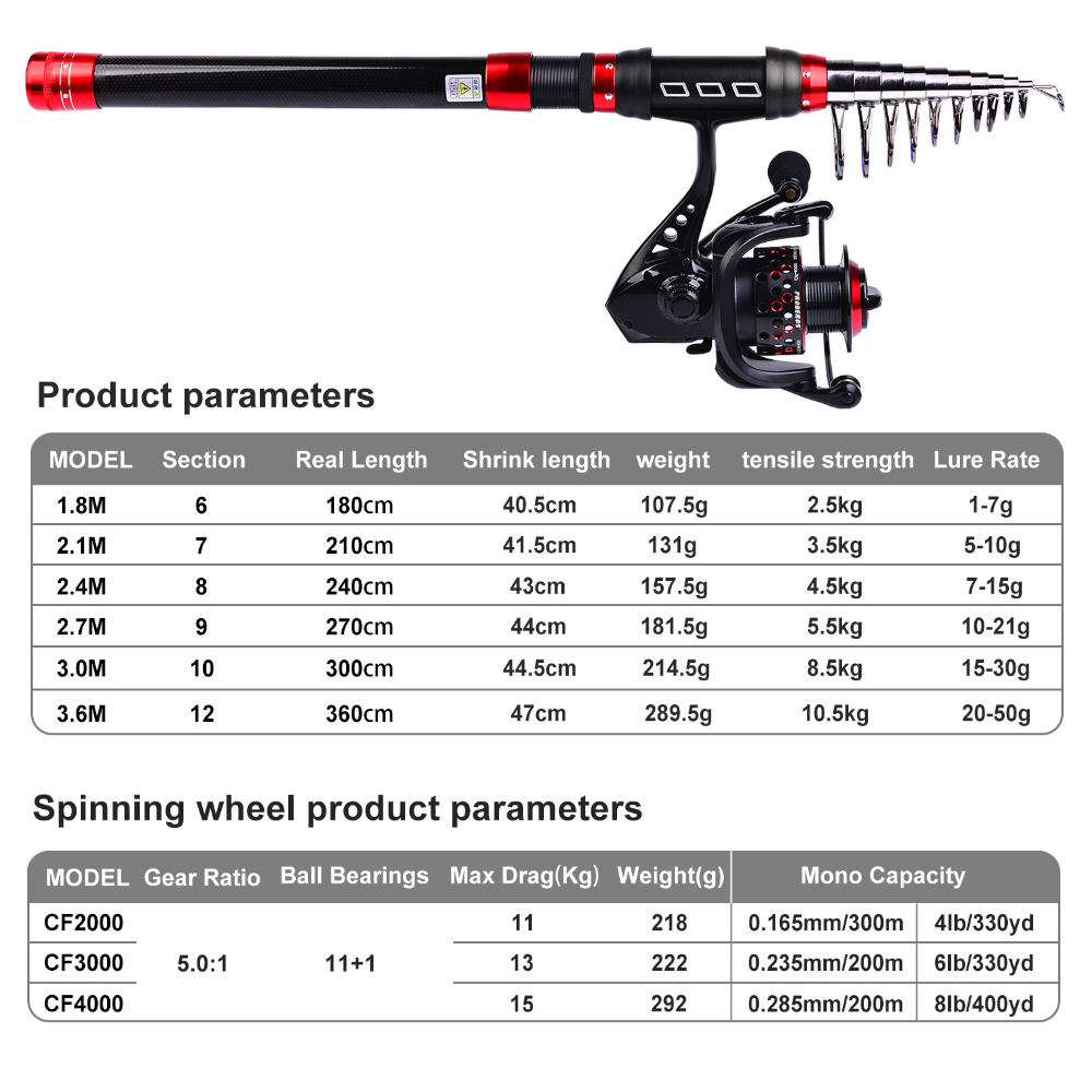 Pancing 1.8M / 2.1M / 2.4M / 2.7M / 3M / Joran Pancing Dengan Bahan Serat Karbon Joran Pancing / Joran Pancing Laut