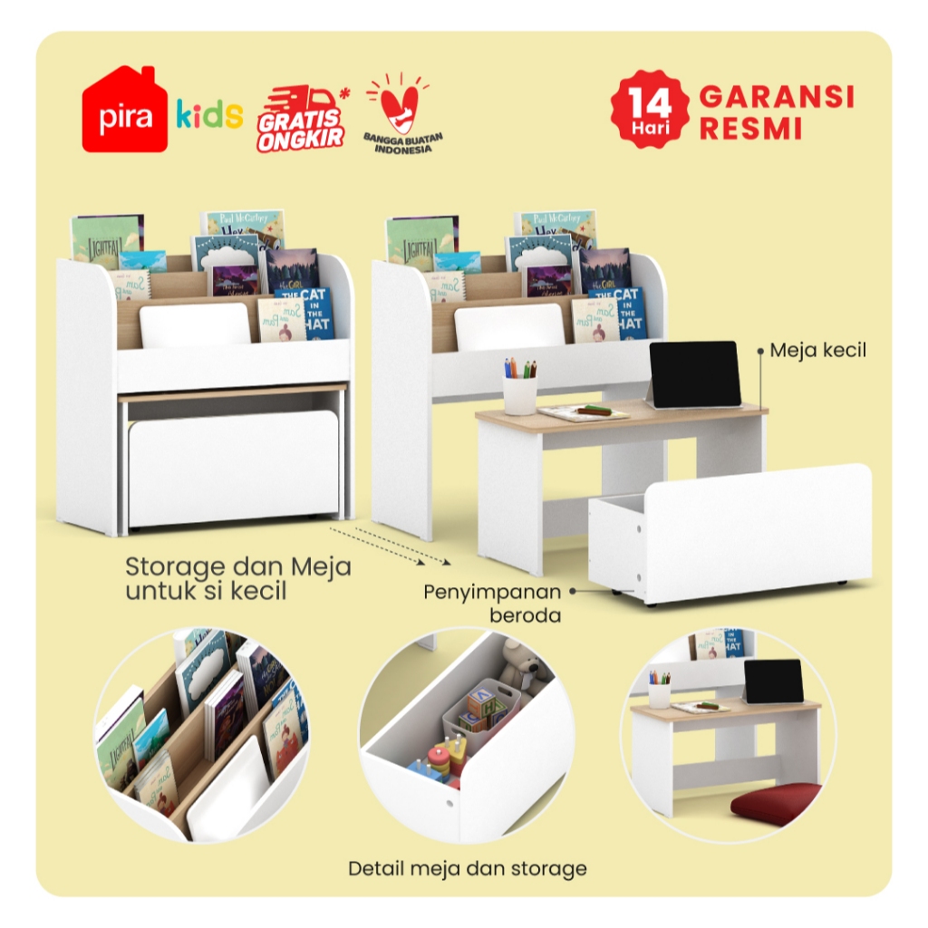 Rak Buku dan Meja Belajar Anak dengan Tempat Penyimpanan