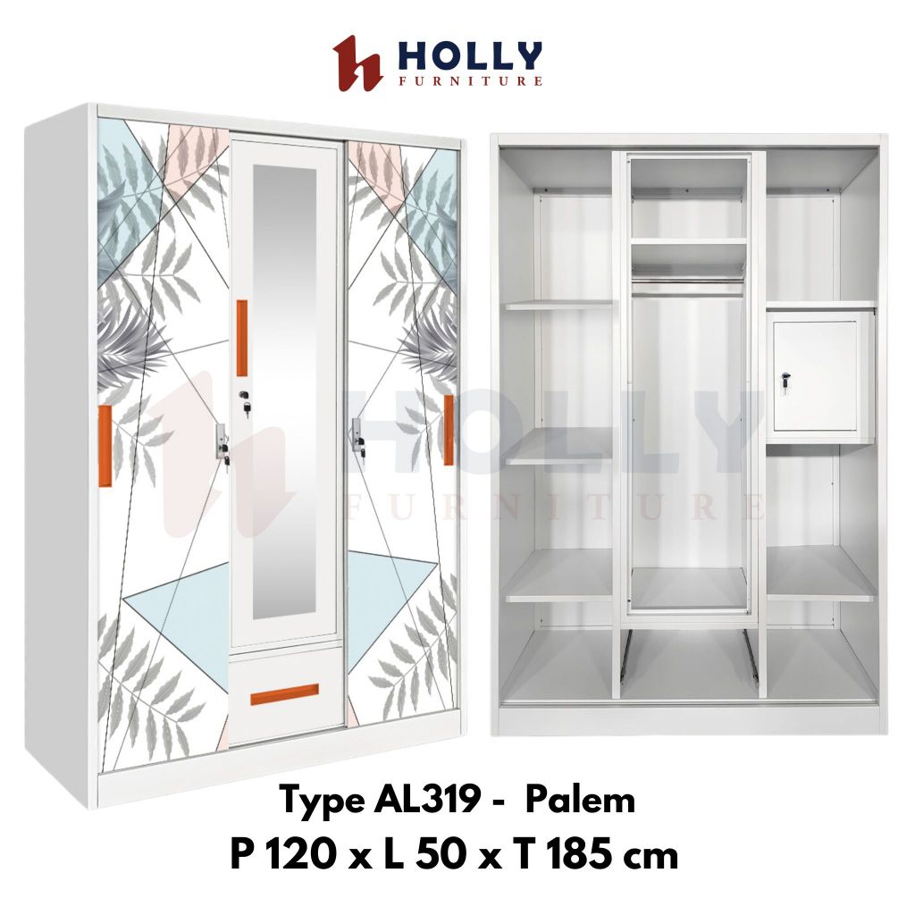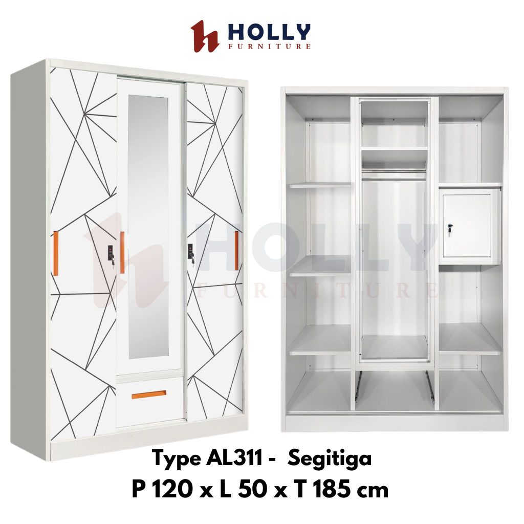 Lemari Pakaian Besi 3 Pintu Sliding + Cermin Laci