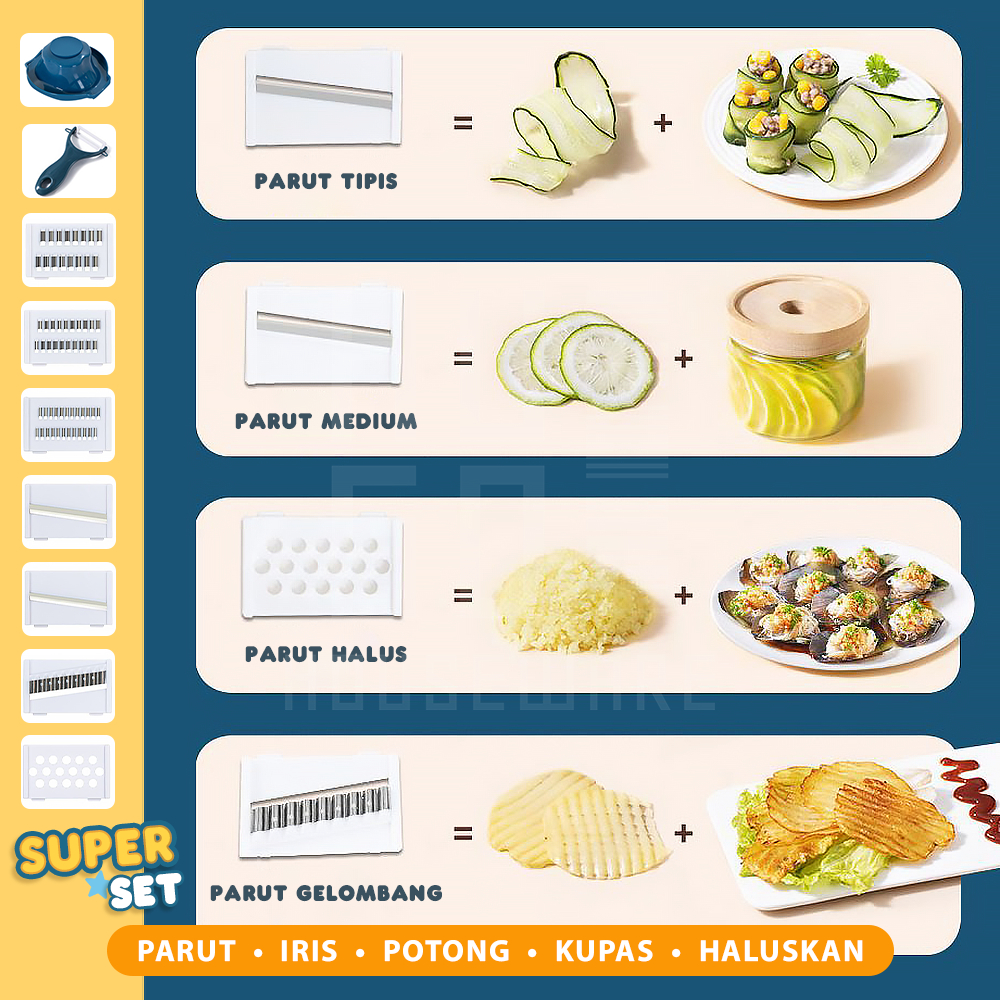 HUGO Parutan Serbaguna Set 11 in 1 Parutan Sayur Buah Wortel Kentang Multifungsi Peeler Pemotong Pengupas Serbaguna