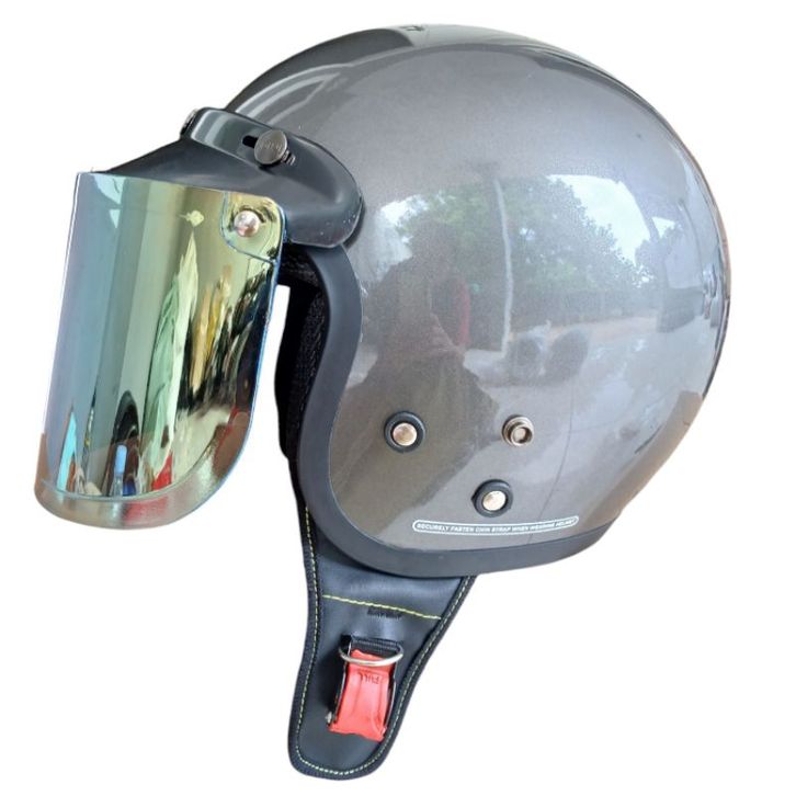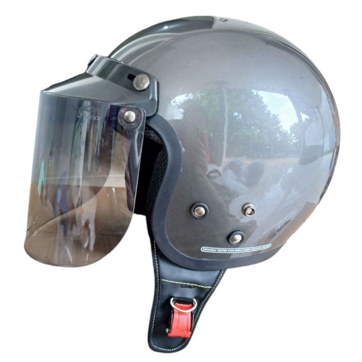 Helm Bogo RETRO dewasa Warna Grey Glossy Merk ARY Variasi pake kaca dan pet FREE STIKER