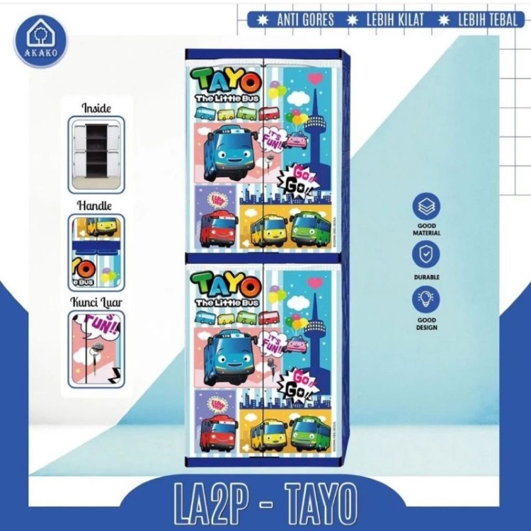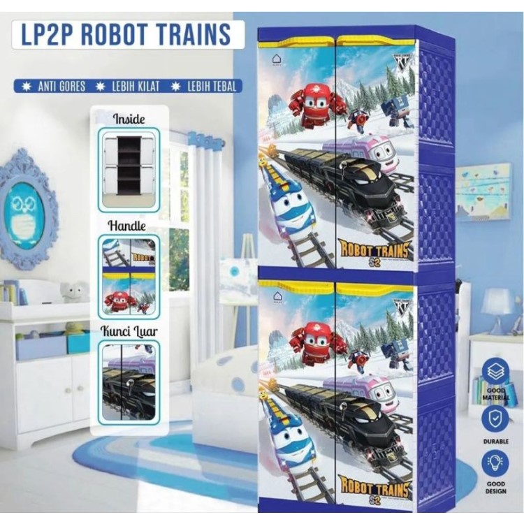 LEMARI PLASTIK KARAKTER ANAK 2 PINTU LA2P MOTIF PRINTING ROBOT TRAINS DAN NEW TAYO AKAKO PROMO TERLARIS MURAH TERBARU