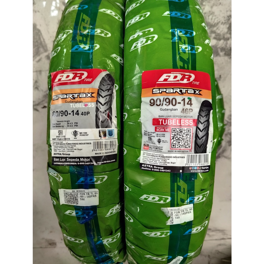BAN MOTOR RING 14 FDR SPARTAX 70 90 & 80 90 BAN DEPAN BELAKANG TUBELESS SATU SET ORIGINAL