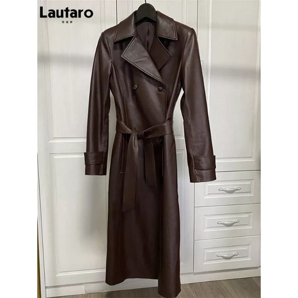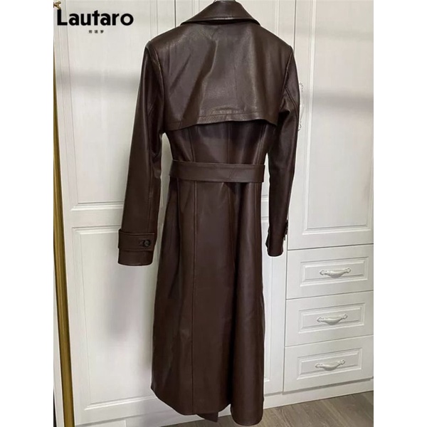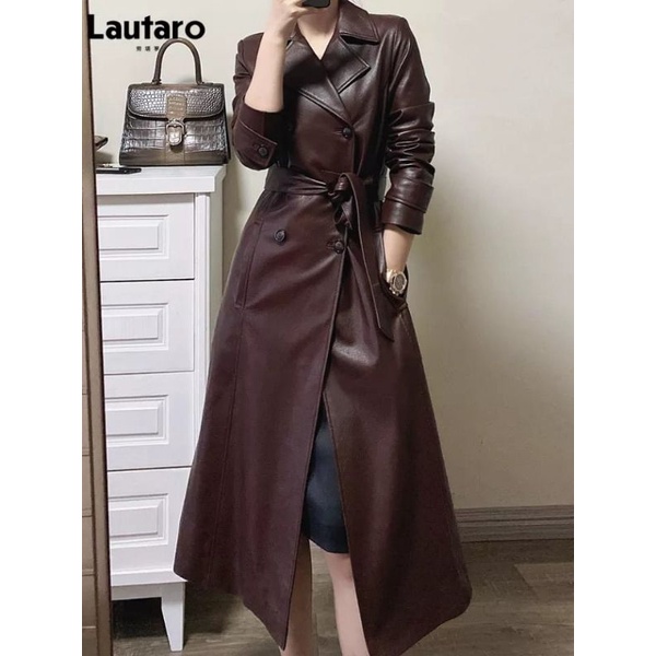 Long coat wanita caramel/jaket kulit/Jaket leather/jaket jubah semi kulit wanita vintage