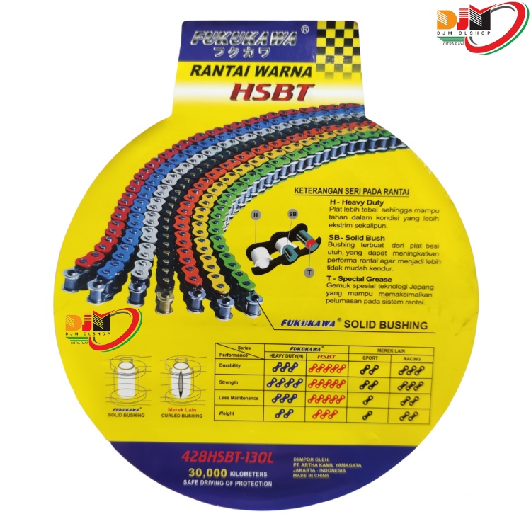 Rantai 428 Ukuran 428HSBT 130L Original Fukukawa Warna Kuning Hijau Biru Hitam Best Seller