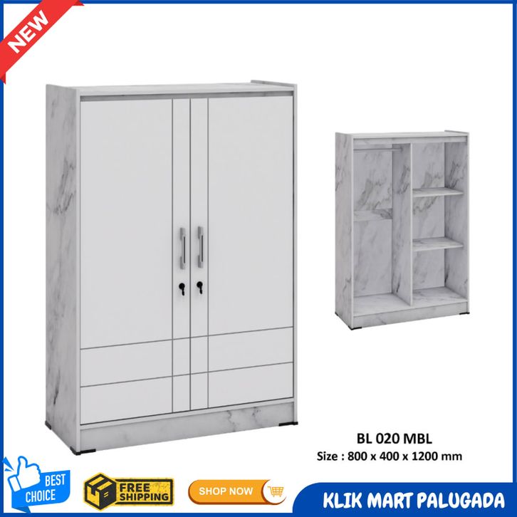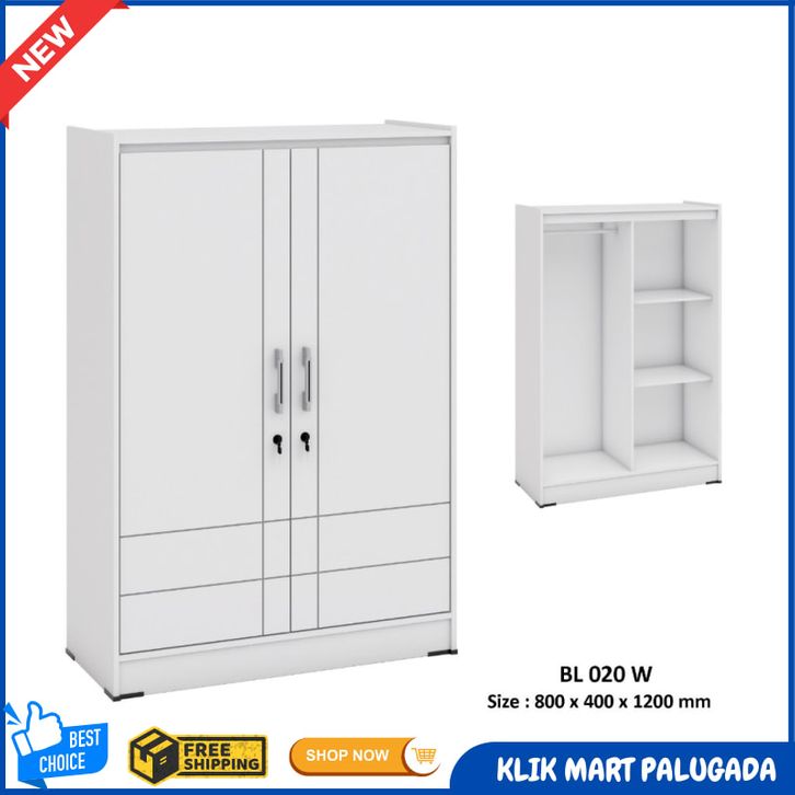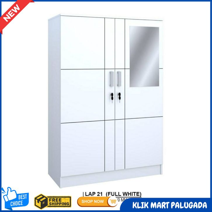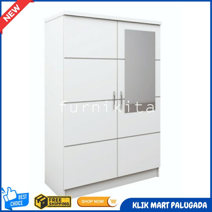 LEMARI PAKAIAN 2 PINTU KAYU KACA PUTIH BABY LOCKER