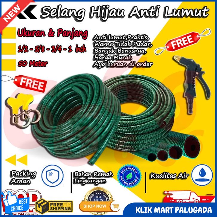 SELANG AIR 50 & 100 METER 1 ROL 1/2 5/8 3/4 1 INCH HIJAU ANTI LUMUT TEBAL 2 MM ALAT TAMAN PERKEBUNAN