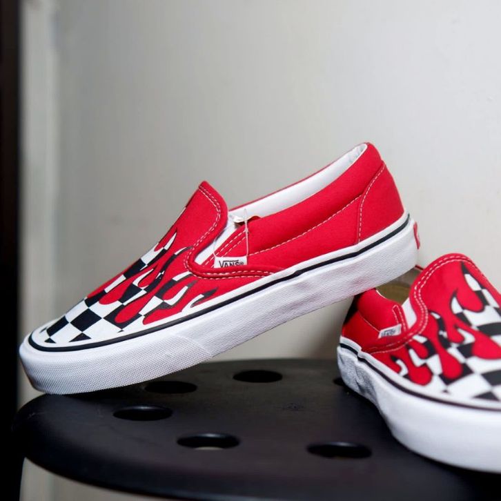 Vans Slip On Flame Checkerboard Racing Red Original100