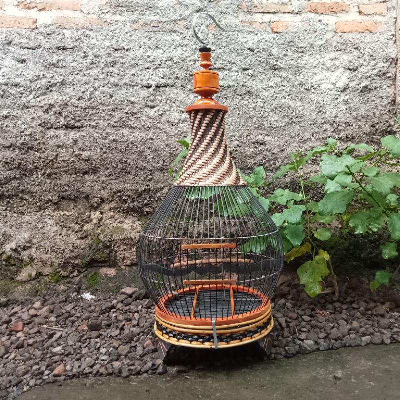 DISCON Sangkar perkutut kerucut anyaman sintetis rangka besi
