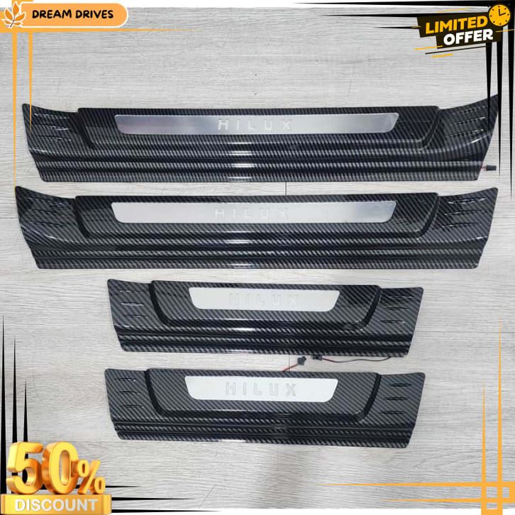Sillplate Samping HILUX Hitam Carbon Pijakan Kaki Pelindung Pintu 2016 2017 2018 2019 2020 2021 2022 2023 2024