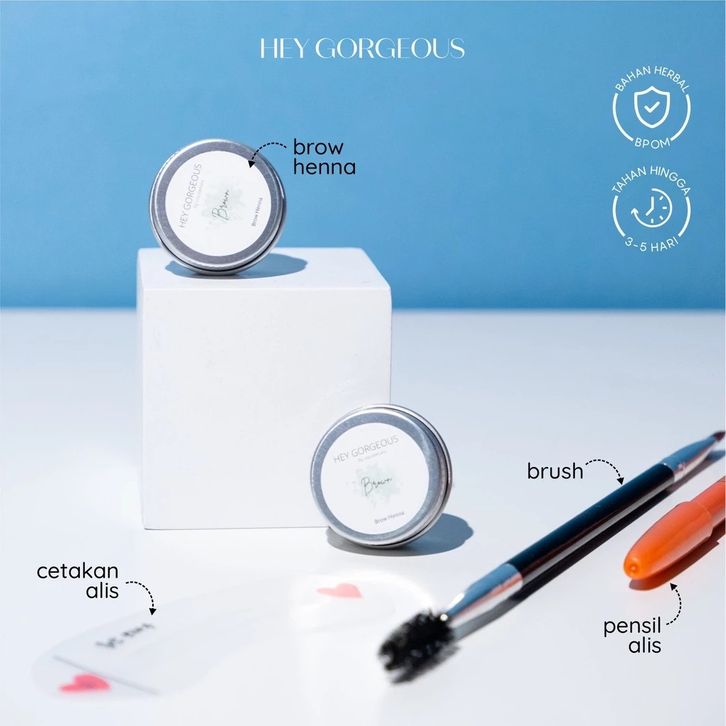 Set Brow Henna / Henna Alis Hey Gorgeous - Halal Tahan 3-5 Hari FREE PENSIL ALIS (WATERPROOF) by Vosulamalis Lengkap