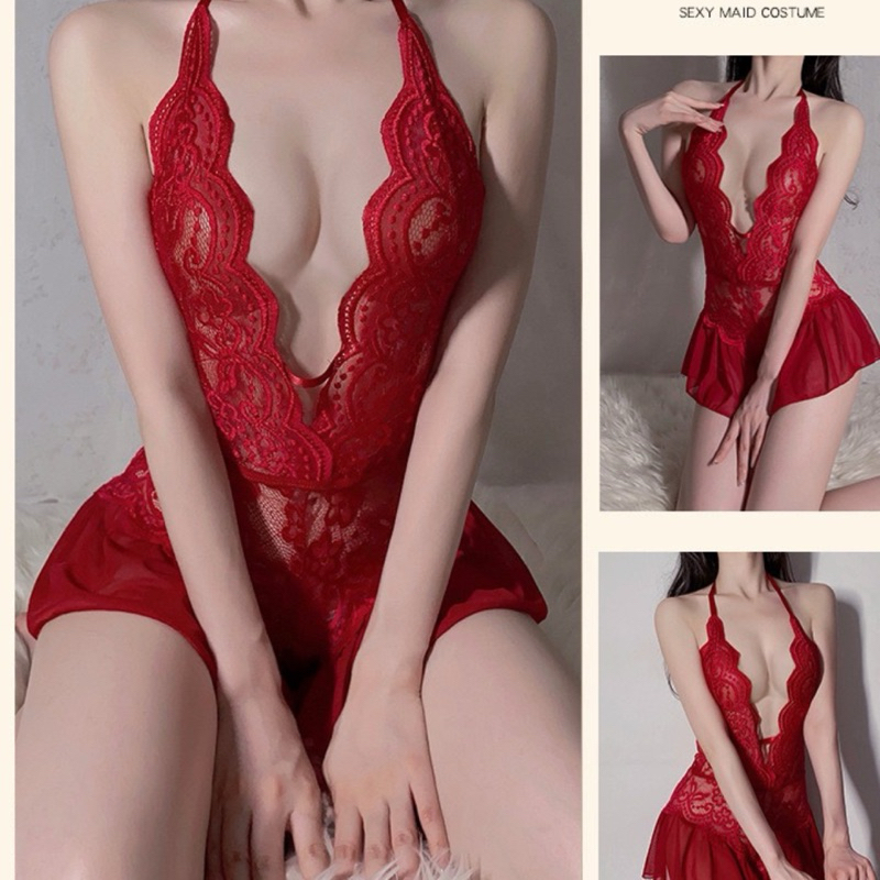 [GOODKITTY] L43 Lingerie Sexy Jumpsuit Transparan Open Crotch V-Neck Seksi Lingerie 0043