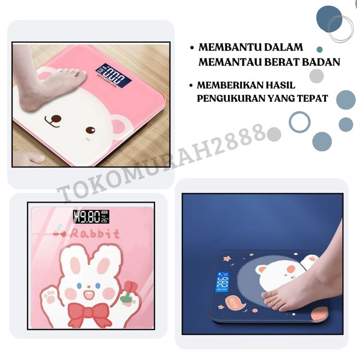 WEWANT timbangan digital 40kg BADAN MINI DESAIN KARTUN 21X25 BATERAI POLOS 25X25 TERBARU MURAH DENGAN BERBAGAI JENIS