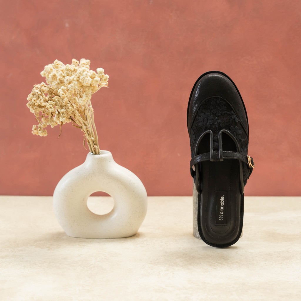 Dianable - Loui Mules Sepatu Wanita (Black - Beige) New Lace