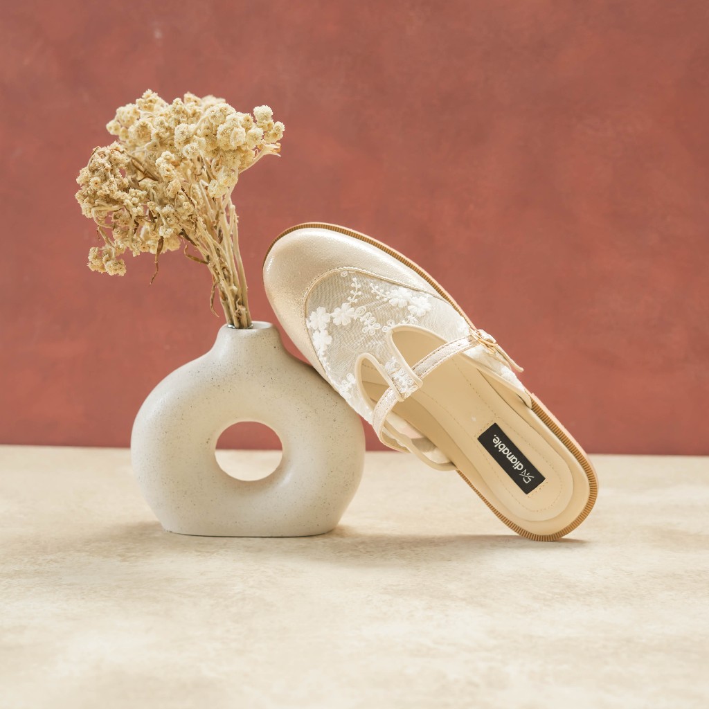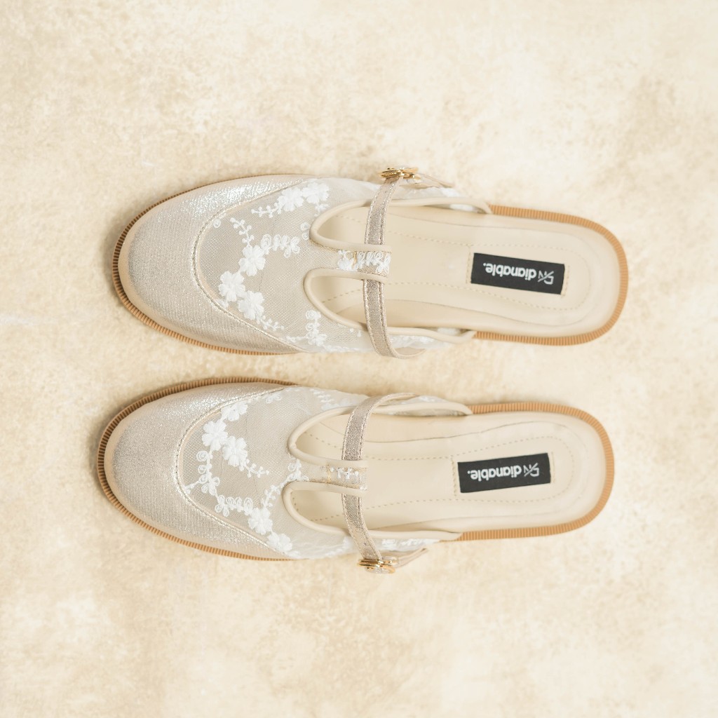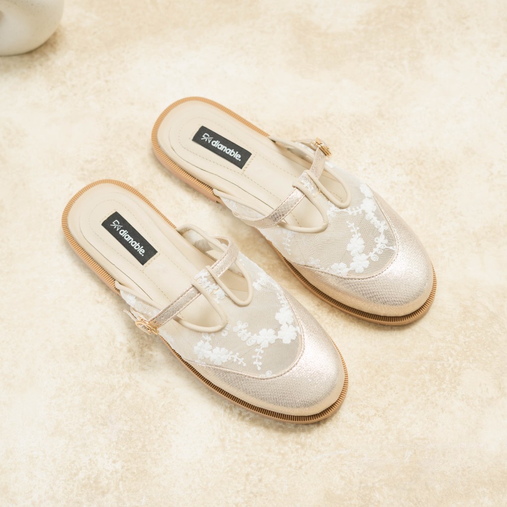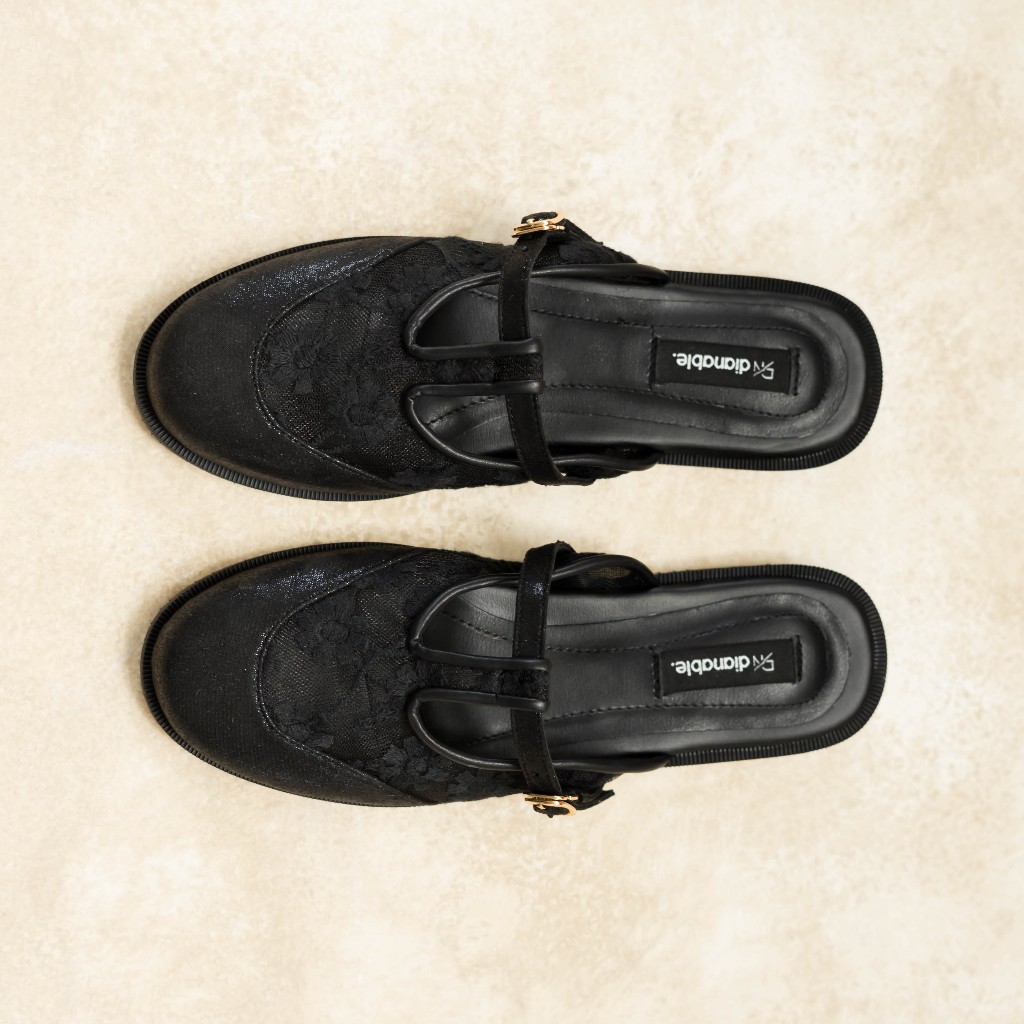 Dianable - Loui Mules Sepatu Wanita (Black - Beige) New Lace