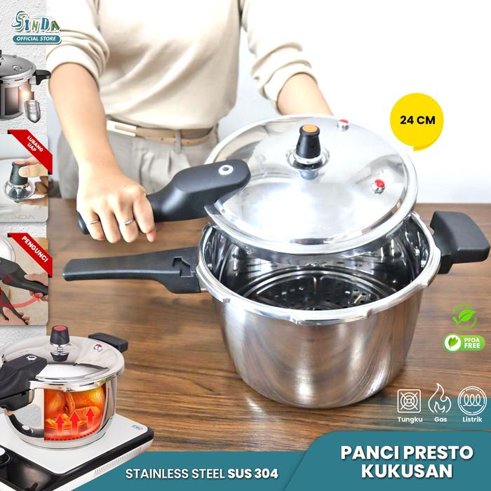 SINDA Panci Presto 6 Liter Stainless Steel 304 Presto Jumbo Pressure Cooker Multifungsi - 6 Liter